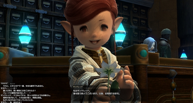 重たいけどやるしかない(笑) とりあえずSSは撮りまくったので、何枚でもアップすることにします。 メインストーリーはほんのさわりに部分しかできないのかな?あとは、一応システムの根幹に成っている リーヴ、クエストを受けて報酬をもらうのの繰り返しなんでしょうかね。あと、生産のシステム。ですか。こちらはまだ一切手をつけてないのですが、今回のFF14は、装備品類にすべて耐久値が設定されているので同じ装備を使い続けるには、修理をしなければ成りません。よって自分の防具は自分で修繕したり作ったりといったことが必須になってくるんでしょう。街中にいてもどこもかしこも何かを作っている人たちでいっぱいです。 まぁとりあえず。最初の所属国、3国をぱぱっとみます。 [グリダニア] ほとんど森です。FF11でいうならウィンダスなんでしょう。とにかく森です。登場人物たちもどこかコント入ってます。でも地形的にちょっと敬遠かな~と考えてます。 主要人物だと思われる角が生えた少年。 ・・・・・ せんとくんですね 各方面から言われている様子ですm9^Д^) [リムサ・ロミンサ] ベンチマークでは、この町を最初に選んだ場合の映像が使われていました。クローズドベータテストでも最初はこの町のみ。だったのですでにかなり露出がされている町となります。そういうわけなのか、すでにBGMも聞いたことのあるのばかりでして、なんか始める前からすでに新鮮さを失っているような気がするんですよね(゜▽゜;)僕だけでしょうか。。。ちなみに海賊の町です [ウルダハ] 闘技場やカジノがある街です。個人的にはココがいちばん好きですね。予定ではこの町が所属国になります(♭'V`)b周りの土地は豊かではなく岩肌、砂漠といった感じのところです、が町は華やか。っていうところですね。紹介のムービーにもありましたがパレードが行われているのはこの町です。で、闘技場用のモンスター「ぐーぶー」も見世物としてパレードに混ざってるんですが、それが突然暴れだして街を走り回るのを止める。のがスタートです。イケメンの彼と。 で、冒険者ギルドを紹介してもらって走り回っているうちに、パレードでぐーぶーに魔法をかけて落としなしくさせておく役目の呪術師が、仕事失敗のせいで町から追い出されて困って許可が必要な鉱山に勝手に入ってしまってつかまり、でひと悶着あってその人の後を追いかけることに(怒濤 SSにはありませんが、この町にはミコッテの歌姫が居まして、その歌姫がこの仕事失敗の呪術師にことを知っているみたいですね、わざわざ気にかけて一緒に追いかけるのを手伝ってくれます。 ちなみにこの下のララフェルは、ウルダハの冒険者ギルドの代表的なお方。 追いかけていった先のキャンプで、呪術師は見つけられるんですが、そこには女の子もひとり。 実はパレードで暴れたグーブーに巻き込まれてこの子の父親が重体に。しかもこの後死んでしまいます。 この子にしてみたら、ちゃんとグーブーを押さえ込んでおけなかった呪術師が仇なわけですね。 で、どうやら亡くなったこの子の父親と、呪術師は知り合いの様子でした。 みれる話はココまでなのかな? んーーーこの後どうなるかな~~ 詳しく書いたのはウルダハだけでしたが他の2国もそれなりにストーリーに引き込まれました。今から楽しみです。 オープンベータテストは9/2の9:00までだそうです、朝の9時なのかなたぶん。