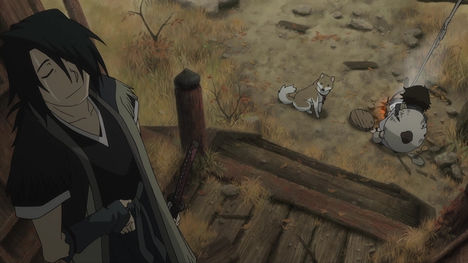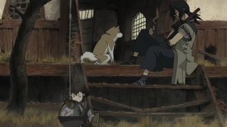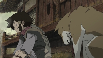 2008年の作品でしたか 映画ですね。 登場人物は。ナナシ、コタロウ トビマル(犬)と、敵ですね。チャンバラムービーです。アニメとしてはぐりんぐりん動きます、びっくりです。 ストーリーは時代劇な感じなので、殺されそうなコタロウをナナシが助けるというもの。ぁ、はしょりすぎましたか((((゜Д゜;)))) ミンの皇帝のために不老不死の薬を作るという目的で日本にまで来ている人たち。でその薬作りにコタロウの血が必要みたいなのです。コタロウの体そのものに秘密が隠されているみないなことが、いろいろなところに書いてあるんですけど結局その秘密って何なのかが良くわからなかったような・・・劇中にちゃんと描写されてたんでしょうか。見落としただけですか? とにかくすごいのがチャンバラでしょう。でもそのシーンが少なかったんじゃないかとも思います、というよりは、主人公のナナシが戦うところが少ないのかもです。 上の出会いのシーンから、焼き魚をナナシにあげてしまって自分の分がなくなったトビマル 可愛すぎる(;´д⊂)